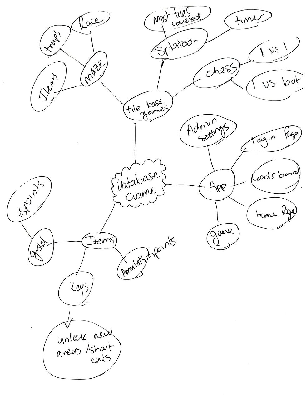 In this lesson, we discussed ideas for our project for this semester. We were shown an example of what a previous student had done in other years. After a brief explanation of the requirements, I took a close look at what it was that I needed to do. I decided to plan out potential ideas for what I am going to develop. I created a brainstorm of possible games, features, app layouts, as shown below: